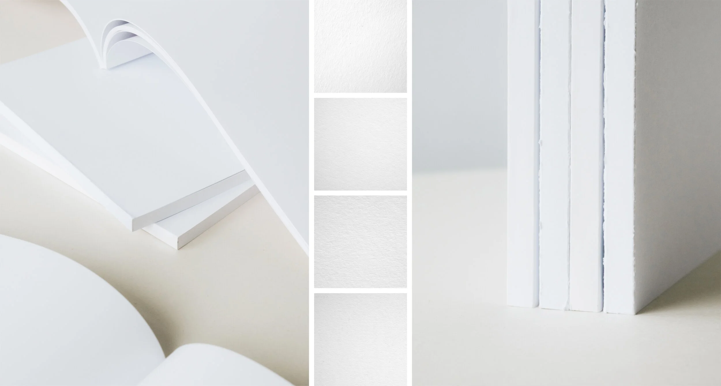 The tone of the paper is another important variable. As you can (barely) see above, the four sheets of paper are all different colors. Going from right to left you have white, also white, kinda natural white, and pale grey. Those aren’t their real names, but wow do they all start blending together. Each of these papers have their own special tone. Some are warmer, and some are cooler. From one of the sample packs I received, the color white went well into yellow and blue. All of that said, if you’re not too picky, this step isn’t too hard to figure out.